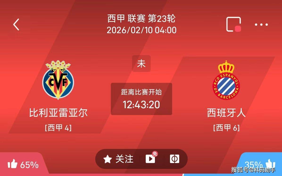 4点西甲 比利亚雷亚尔VS西班牙人 主胜